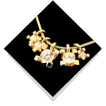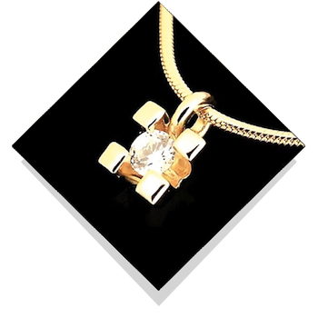 Halsmykker i 14 karat guld, i mange størrelser, helt fra 0,05 ct. og op til 1,0 carat kan du købe, så der er noget for enhver smag og pengepung. Smykkerne sidder her på en alngekæde i guld.