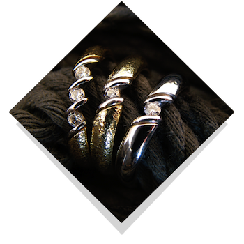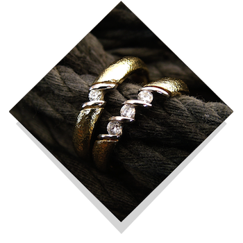 United Romance alliancesmykkerne.Svungne former, diamanten i centrum, og muligheden for at få flere end én brillant i smykket gør denne serie til en meget populær en af slagsen fra Jan Jørgensen. De skrå bånd der indfatter diamanten giver en fin kontrast til det omgivende smykke, og helheden fremstår unik. |
