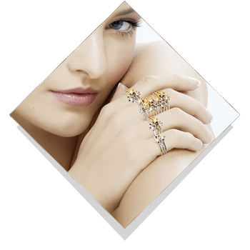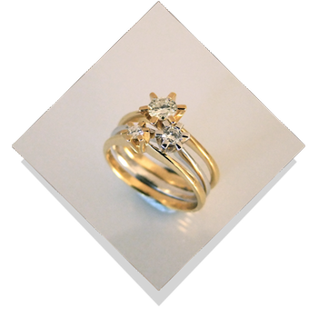 Du kan vælge at kombinere dine ringe så du får en helt "lille stjerhimmel" på fingeren. Vælg selv diamantstørrelser og guldfarve, mulighederne er mange.  |