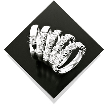 14 karat hvidgulds allianceringe. En smuk, let og elegant ring hvor du evt. kan begynde med blot 1 sten og senere ønske dig flere diamanter.