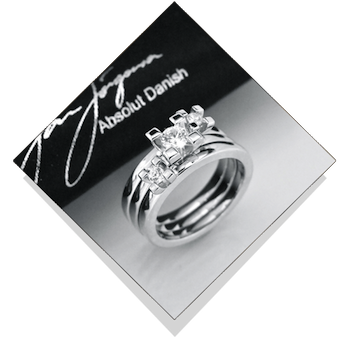 Design udpluk: Ringe udført i 14 kt. hvidguldHvidguld er guld iblandet hvide ædle metaller så det får den lyse farve, og mange holder af farven som matcher de hvide diamanter. Alle gulddesigns fra Jan Jørgensen fås i både guld og hvidguld, og altid i 14 karat. Du kan altid vælge mellem flere overflader og bredder i ringene, og to diamantkvaliteter - mulighederne er rigtig mange, og kvaliteten er i top. |