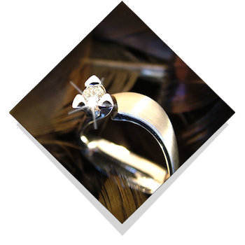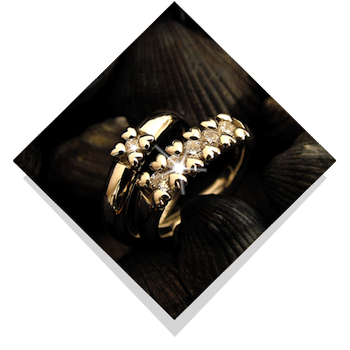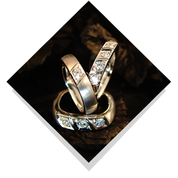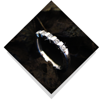 En alliancering med kærlighedssymbolet, hjertet. 14 karat hvidguld, med henholdsvis 1 diamant og med 5 diamanter, flere kan isættes ved særlige mærkedage. der er 5 bredder og brillantstørrelser, du kan vælge mellem 2 diamantkvaliteter og hvilke overflader din ring skal have.  |