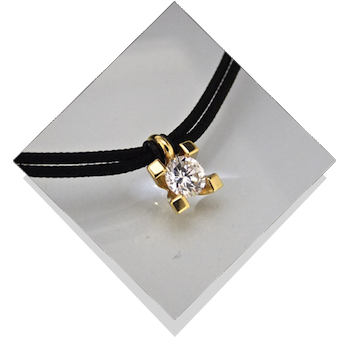 Et elegant og tidløst vedhæng hvor brillanten er i fokus. Her sat på sort faldskræmsline, som er en utrolig stærk og holdbar line som vi anbefaler til vedhænget. |