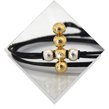 | Guld/hvidguld til arm, Absolut Faith Kors af kugler i henholdsvis guld og hvidguld, de hvide kugler kan i øvrigt let flyttet og sættes længere fra midten hvis du ikke ønsker at det er et kors. |  |