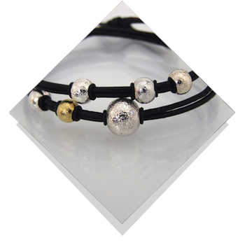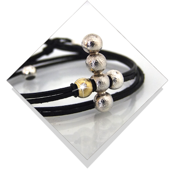 | Guld/hvidguld til arm, Absolut Round Kugler i to størrelser, den lille i hamret hvidguld og den større i hamret guld, begge har diamanter isat. |  |