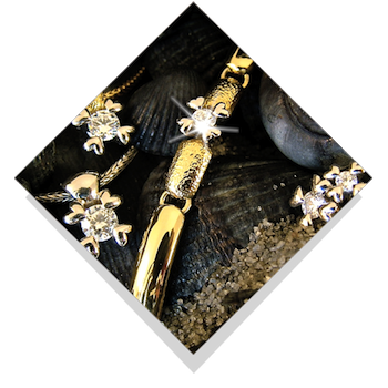 | Guld/hvidguld - Absolut Faith Troskabssymbolet korset her i en moderne version med kugler, og i dette design en enkelt i guld og de øvrige i hvidguld. |  |