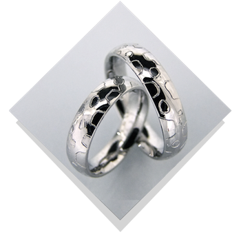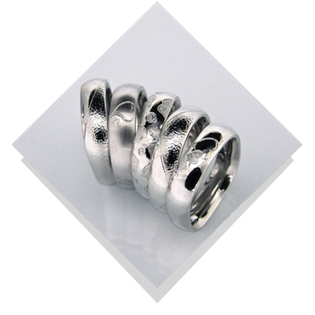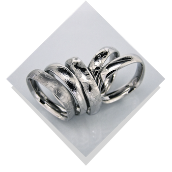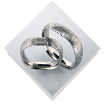 Ædelstålringe med sjove overflader. Et nytænkende design som i hvert fald er anderledes end mange andre designs du ser på markedet. |