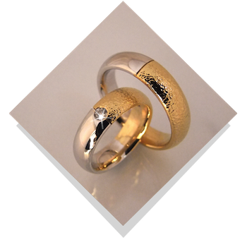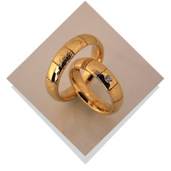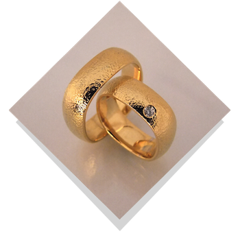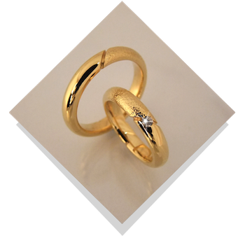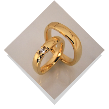 Disse vielsesringe fra Jan Jørgensen er kraftige og indeholder meget guld. Deres form og design har således megen volumen. Diamanten i dameringen går fra 0,05 ct. til en stor kvart carat, nemlig 0,25 ct. Bredden på ringen vokser i takt med at brillanten vokser, et fyldigt design i enkel stil.