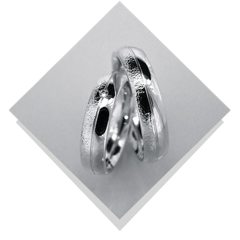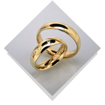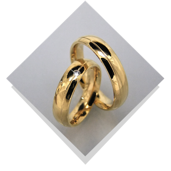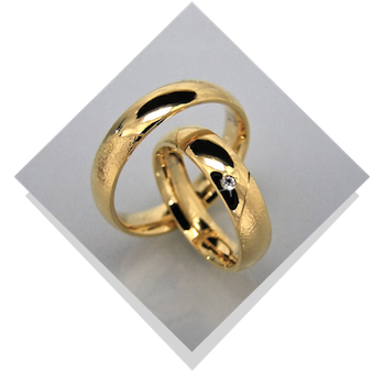 Disse vielsesringe fra Jan Jørgensen er kraftige og indeholder meget guld. Deres form og design har således megen volumen. Diamanten i dameringen går fra 0,05 ct. til en stor kvart carat, nemlig 0,25 ct. Bredden på ringen vokser i takt med at brillanten vokser, et fyldigt design i enkel stil.