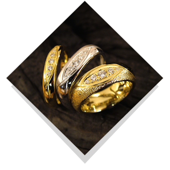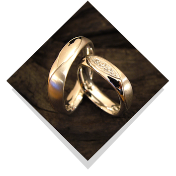 Vielsesringene: Real Eternity.Vielsesringe med evighedstegnet i midten, ringe i særklasse i forskellige bredder og i enten guld eller hvidguld, med en flot brillantbesat flade i dameringen, unikt design fra Jan Jørgensen, godt dansk håndværk med omtanke i designideen. |