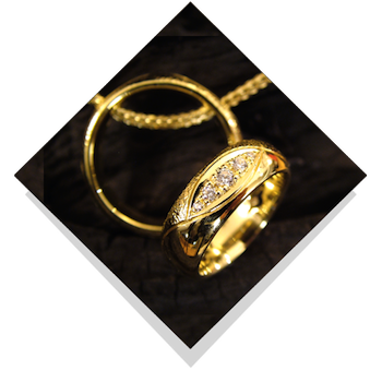 Designet laves med huller til kæde så ringene kan hænge om halsen og se flotte ud som et smykke. |
