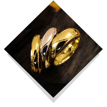 Her de tre dameringe, i både runde og firkantede former, i guld eller i hvidguld, med brillanter i evighedssymbolet. |