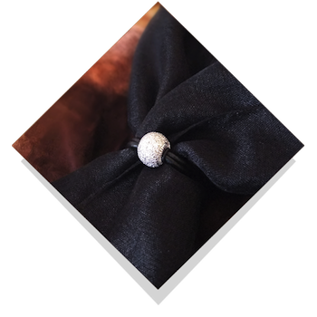 Multi-smykketDa Dronningen holder af at bære smykker som pynt i både tørklæder, om arm og hals mm. valgte Jan at montere guld- og diamantkugler på lædersnore, så smykket kunne bruges som et multi-smykke, der netop kan bæres om arm og hals mm. |