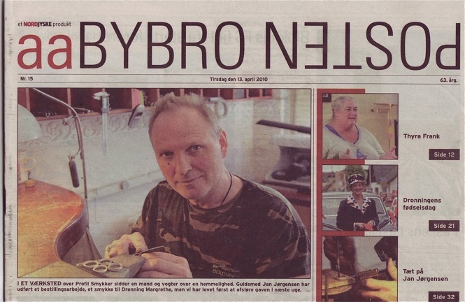 | Nordjyske stifttidende skrev lidt baggrund om designer Jan Jørgensen i forbindelse med overrækkelsen af det unikke smykke til H.M.Dronning Margrethes 70 års fødselsdag | |