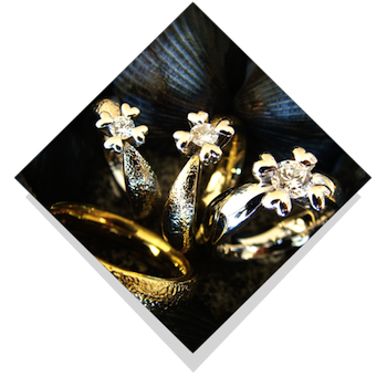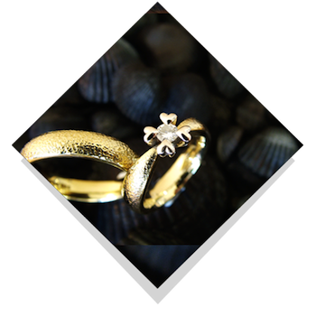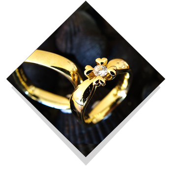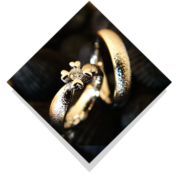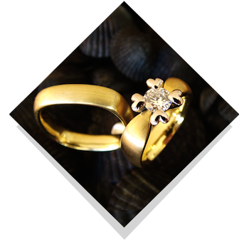 Vielsesringene: Royal Heart.Disse kærlighedsringe er elegante og helt særlige og vil givetvis bringe glæde. Dameringene er i særdelseshed en påmindelse om kærligheden, da diamanten sidder i spænd blandt fire hjerter. Designet kan være både i den sædvanlige runde form men også i vore firkantede form, som Jan Jørgensen kalder quatro-modellen. Især ved en ring med stor brillant i top er det en fordel at ringen er firkantet, for så forbliver diamanten i toppen af ringen og drejer ikke ned på siden. |