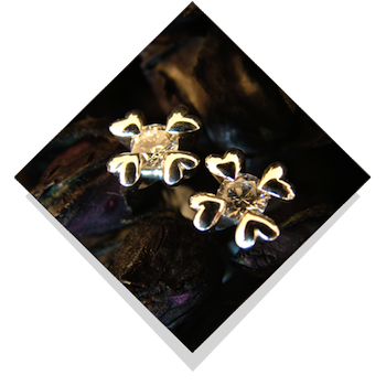 Designet er hjerter der omslutter diamanten på smukkeste vis, og lader brillanten funkle og komme til sin ret på øret, selv i de helt små diamant størrelser.