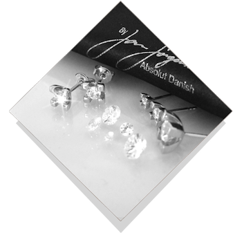 Stikker der sidder på øret, fås i helt små eller op til i alt 1,0 ct. - elegant og tidløst dansk design fra Jan Jørgensens nyeste kollektion. |
