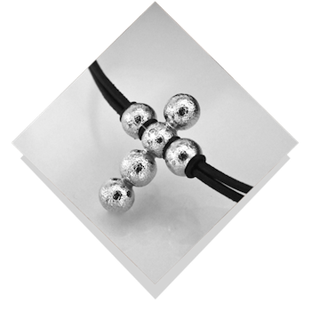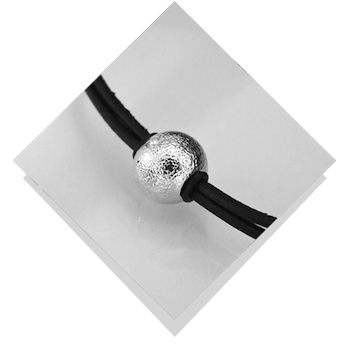 Sølvkugle med hamret overflade, i siden også en brillant. Smykket er i sort faldskræmssnor, som er utroligt stærk. Et klassisk design som også kan købes i både hvidguld og guld. |