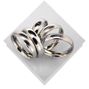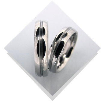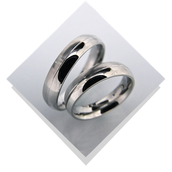 Ædelstålringe med midter-rille der bryder designet og giver lethed.