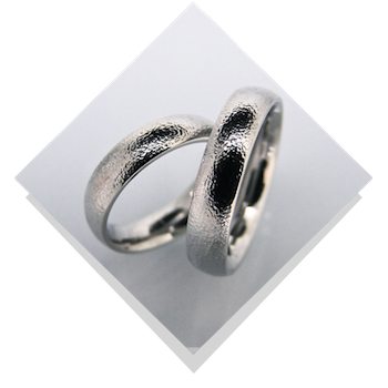 Overfladen er helt blank på begge ringe, men I kan vælge at kombinere den blanke med en hamret eller matteret overflade.