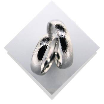 Et par anderledes og markante ringe. Ædelstålet har fået "luft under vingerne", det er som om små skyer svæver rundt i ringene.
