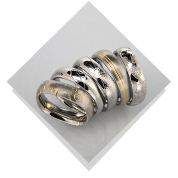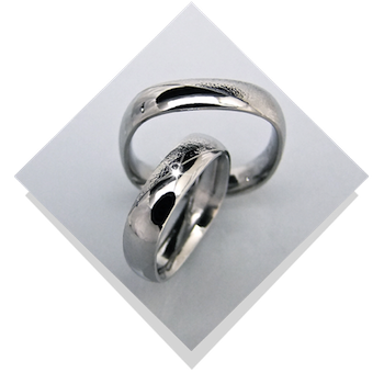 Ædelstål Vielsesringe: Dream of Gods forlovelse/vielse.Ædelstål ringe, elegante og lette, med specielle designs fra Jan Jørgensen. Ringe til jer der skal forloves og måske senere giftes og have guldringe. Vi tilbyder at I indenfor fem år kan få alle jeres penge tilbage for stålringene hvis I køber Jan Jørgensen guldringe i stedet for. Det gør vi fordi mange gerne vil have guldringe til et bryllup, og så har de smukke stålringe gjort lykke i en periode på op til 5 år inden I måske vil udskifte dem til guld. |