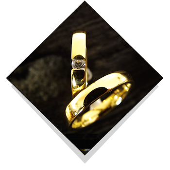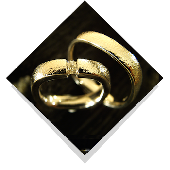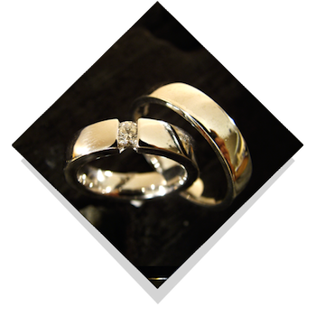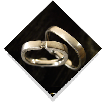 Vielsesringene: Romantic Square 0,05 -0,25 ct. diamanter.Disse vielsesringe fra Jan Jørgensen er kraftige og indeholder meget guld. Deres form og design har således megen volumen. Diamanten i dameringen går fra 0,05 ct. til en stor kvart carat, nemlig 0,25 ct. Bredden på ringen vokser i takt med at brillanten vokser, et fyldigt design i enkel stil. |