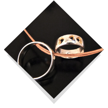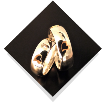 Vielsesringene: 2Dreams 2Hearts 2Gether.Disse nyfortolkede forlovelses- og vielsesringe er til dig der holder af kærlighedssysmbolet - hjertet. Ringene i disse serier er i massivt sølv, de er brede og formfulde og nogle er belagt med 24 karat guld. I dameringene er der isat store diamanter. Til jer der kan lide sølv og vil vise jeres kærlighed. |